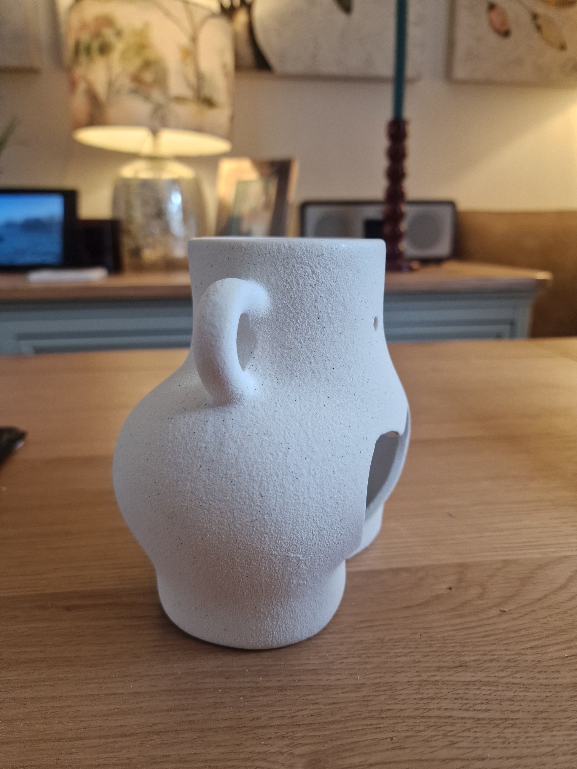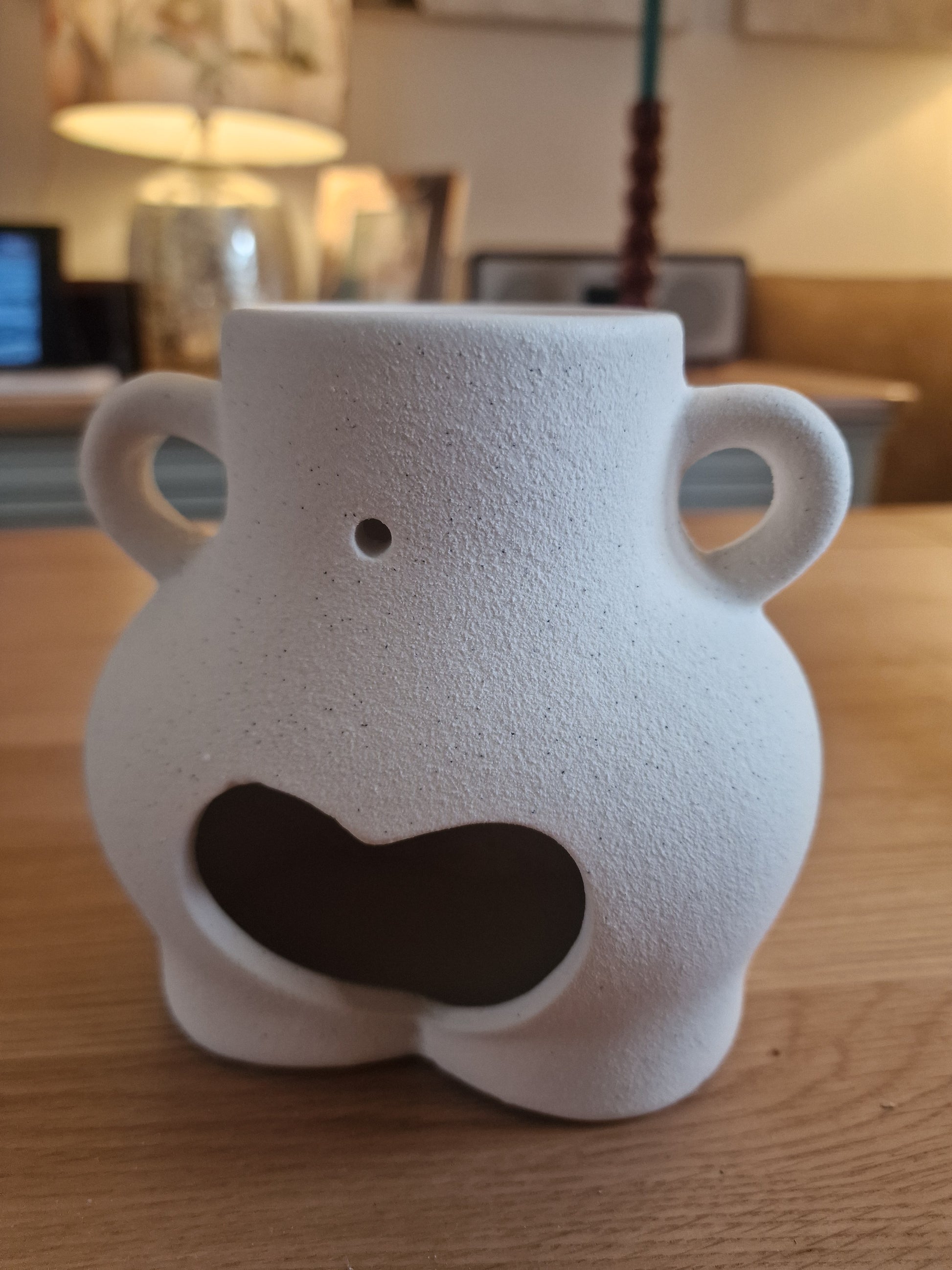 This unique oil burner and wax warmer comes in a fun love handles design that's sure to become a talking point. This take on the bum ceramic trend is perfect for any quirky home. Made from dolomite with a speckled, textured finish.